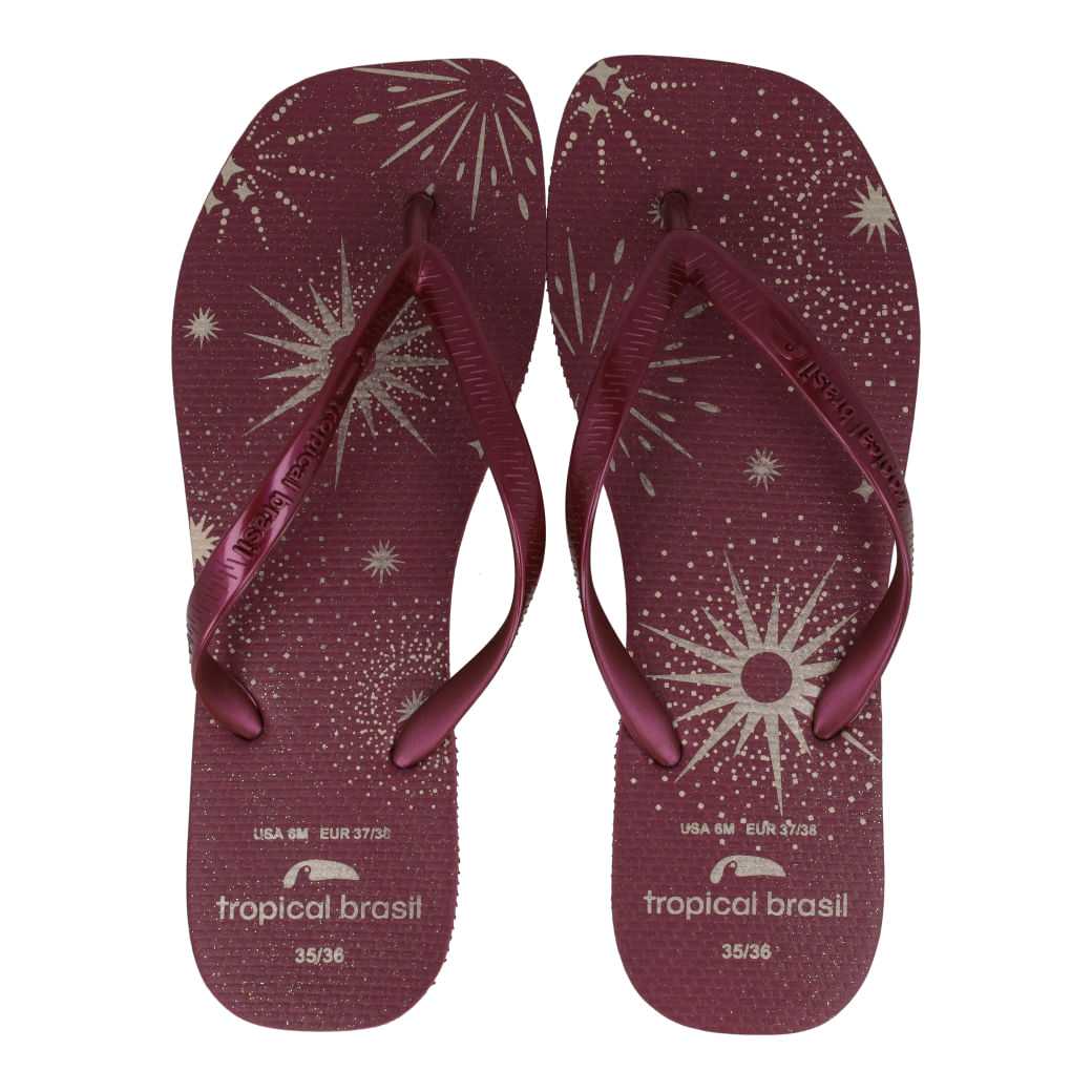 A Tropical Brasil oferece chinelos com design moderno e acabamento metalizado que unem estilo e funcionalidade. Este modelo proporciona durabilidade graças à sua construção em borracha e tiras em PVC. Escolha este chinelo para conforto diário com um visual elegante.